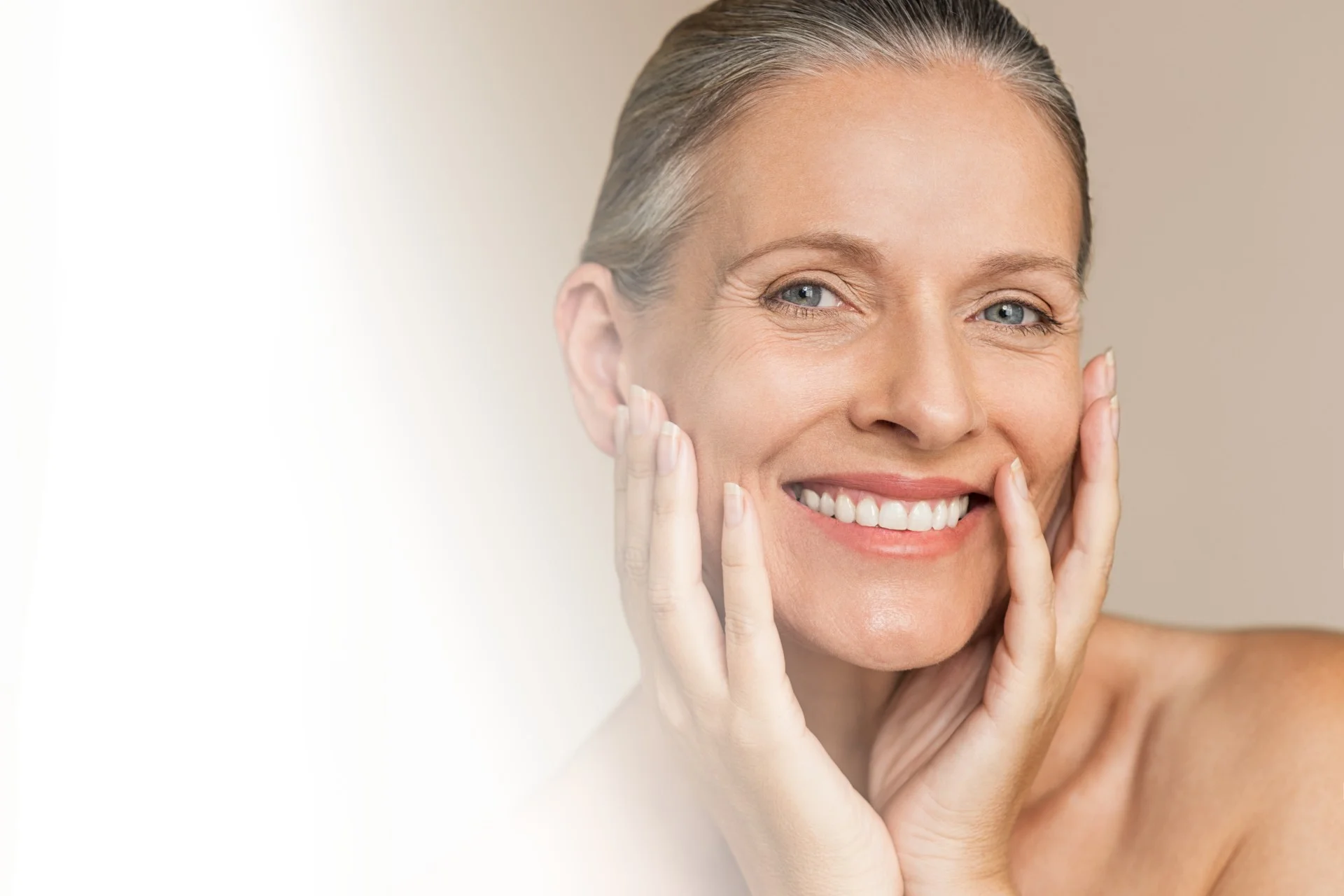 Mit zunehmendem Alter verringert sich die körpereigene Produktion an Elastin, Hyaluronsäure und Kollagen. Die Elastizität der Haut nimmt ab und auch Gewebe und Muskeln verlieren an Spannkraft und Festigkeit. Dies macht sich insbesondere an der feinen Gesichtshaut bemerkbar. Faltenbildung und Hautüberschuss sind die sichtbaren Folgen des natürlichen Hautalterungsprozesses.